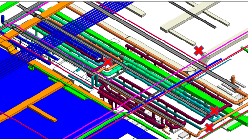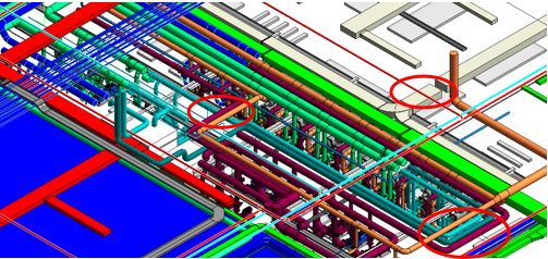 發(fā)現(xiàn)2D設(shè)計(jì)中因缺乏專業(yè)的空間協(xié)調(diào)人員產(chǎn)生的碰撞,規(guī)避施工過程中過多的協(xié)調(diào)工作。